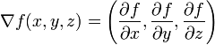 2. The result of applying the differential operator del, represented by the nabla symbol